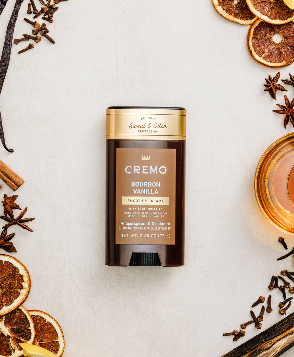 Our Bourbon Vanilla Antiperspirant & Deodorant features a smooth, creamy fragrance with notes of distiller's spice, aged oak, and Madagascar vanilla. Enjoy long-lasting sweat protection that glides on smoothly, with our signature multi-layered fragrance that keeps you smelling fresh all day. Fresh and confident—unquestionably Cremo